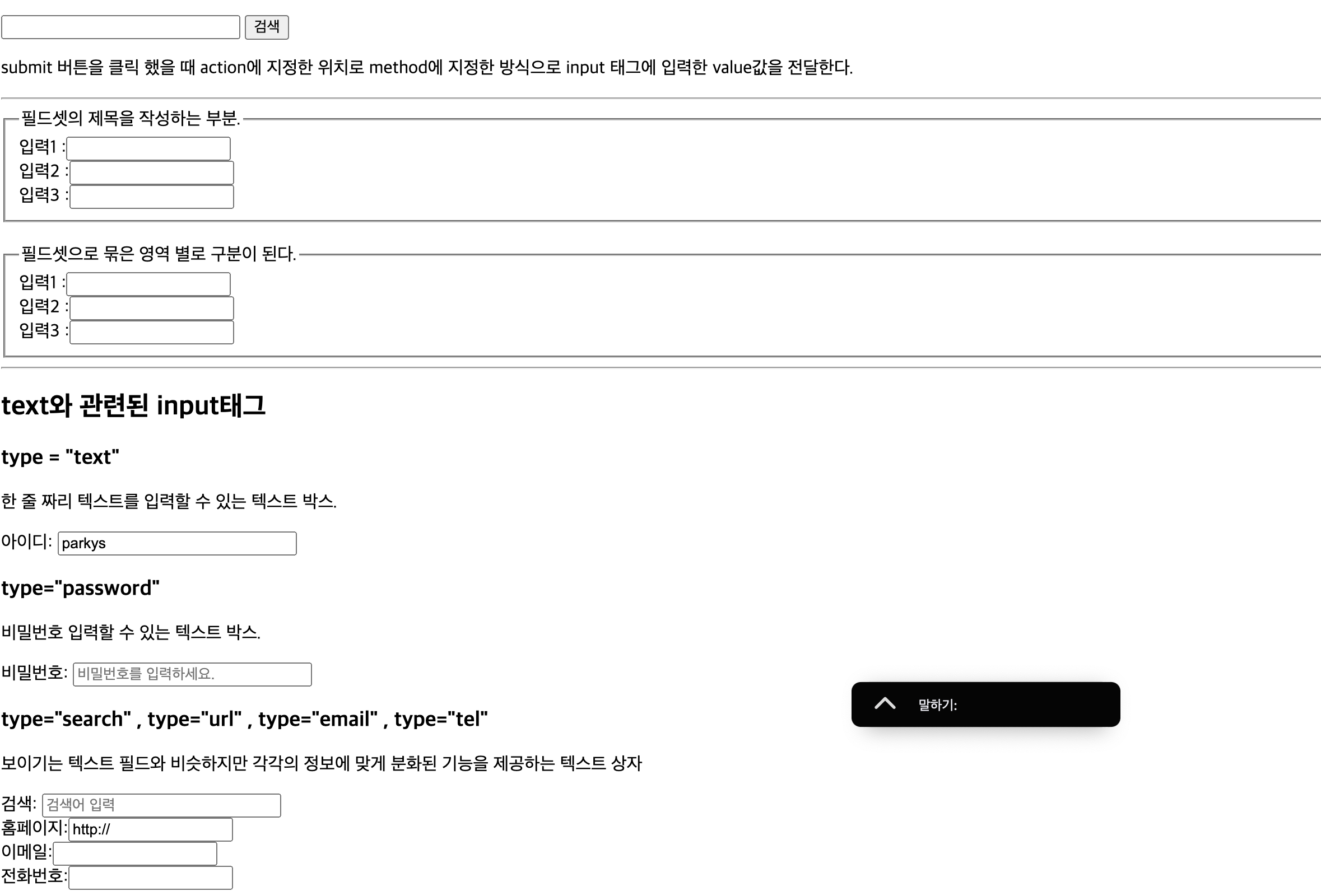 <br>form태그 내의 input태그들을 통해 사용자가 입력한 정보를 서버로 넘기는 역할.<br>