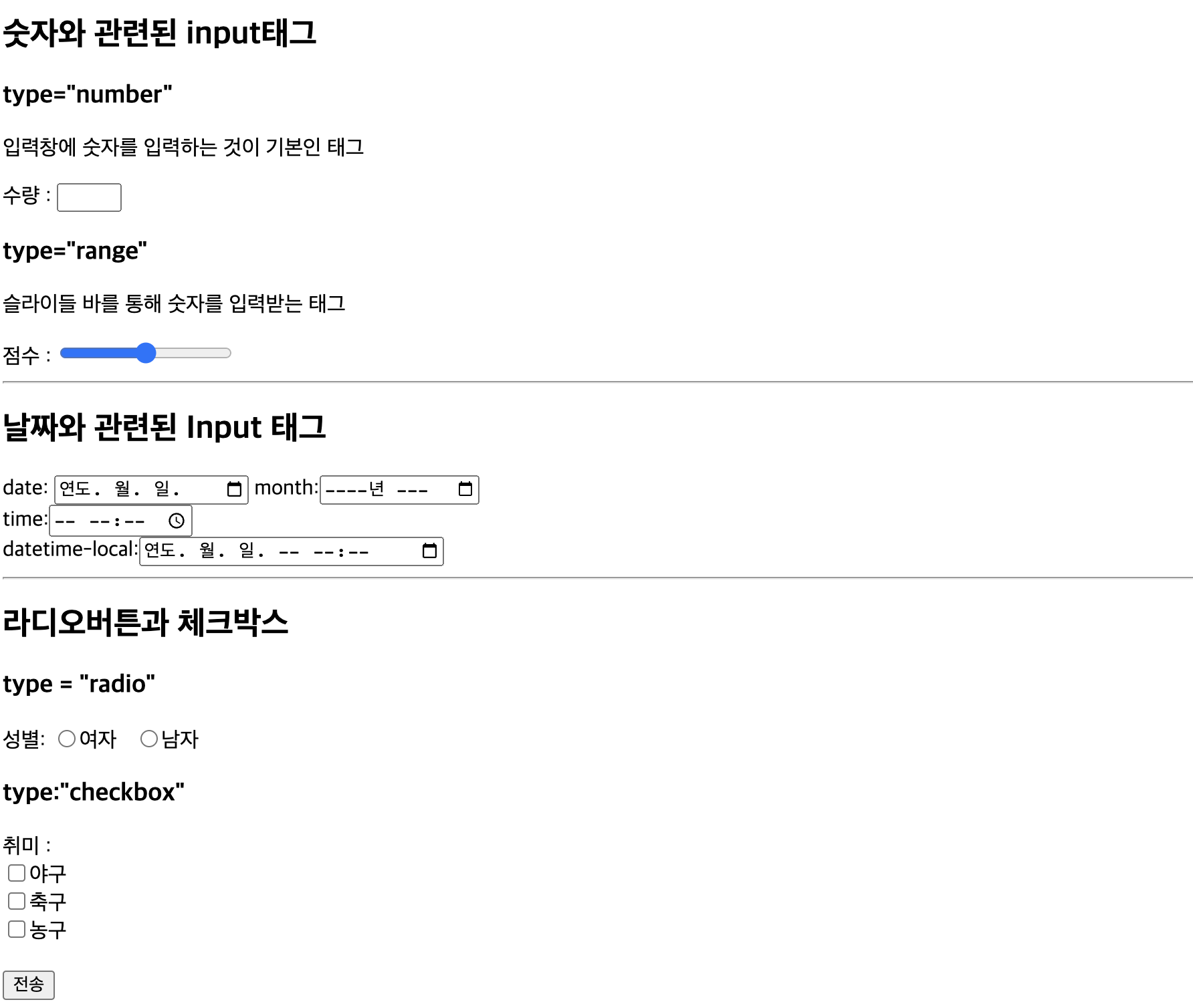 <p>입력창에 숫자를 입력하는 것이 기본인 태그</p>