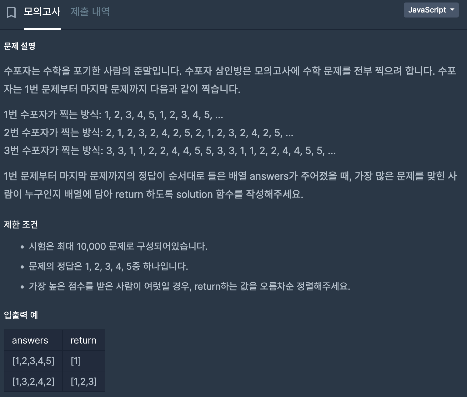 // 수포자들이 찍는 방식의 패턴(s1, s2, s3)과 채점표(score)를 각각 배열로 변환