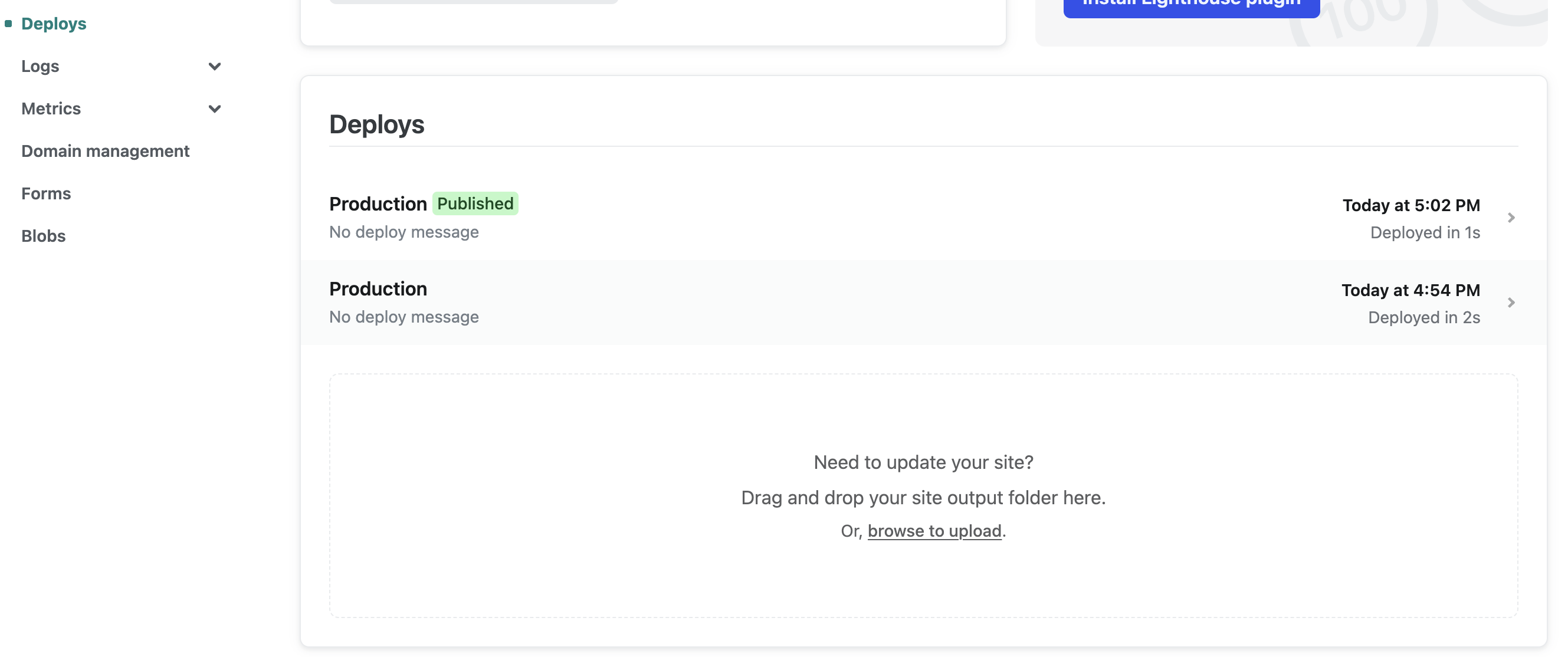 만약 프로젝트가 업데이트 된다거나 하면 deploys 탭에 업데이트한 폴더를 하단의 네모칸에 드래그하면 업데이트된다.